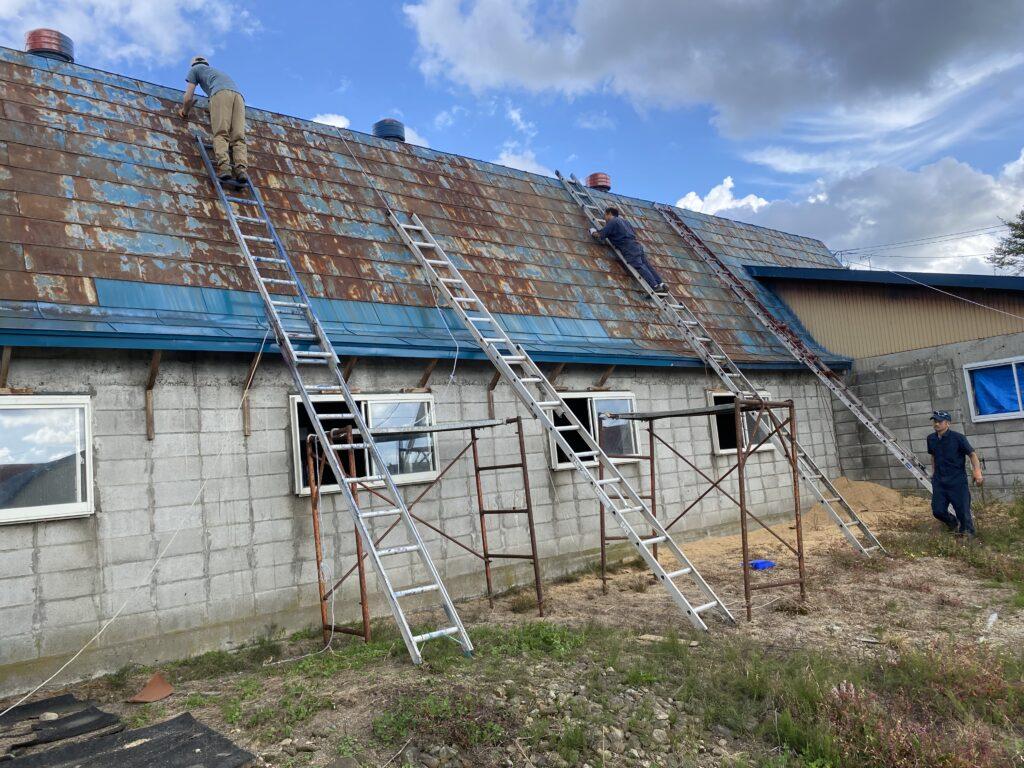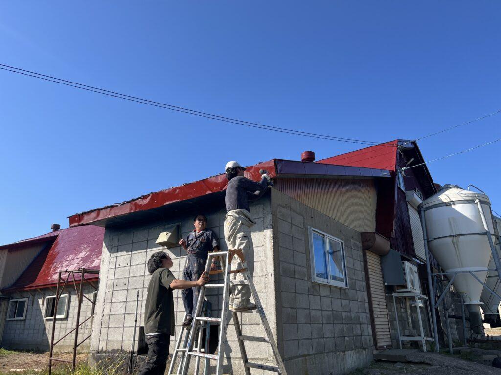 2日目には、破風・鼻隠し部分の修復を行い、就農支援チーム・町内酪農家一丸となり、新規就農者の営農開始に向け準備を進めました。