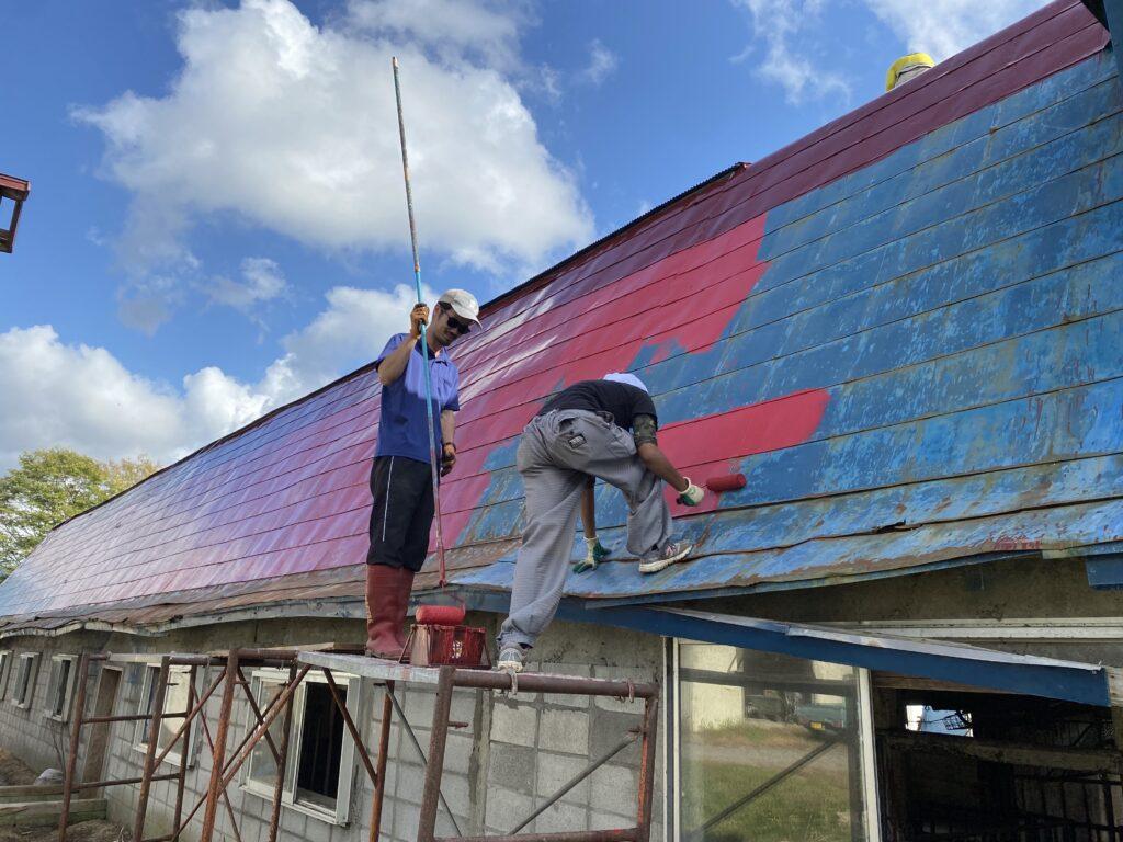 10月2日から3日にかけて、当担い手協議会新規就農者支援チームより、町内の若手酪農家の皆さんにご協力を頂き、新規就農予定者の牛舎屋根のペンキ塗り・修復作業を行いました。